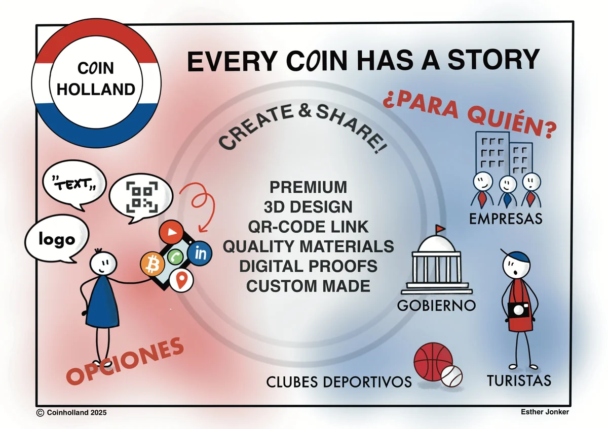 En Estados Unidos, estas monedas simbolizan la unión dentro de las fuerzas armadas, la policía y los bomberos. De vuelta en los Países Bajos, decidí continuar con esta tradición estadounidense, pero con un enfoque comercial único. En la creación de Coinholland, reuní a un equipo de profesionales apasionados.