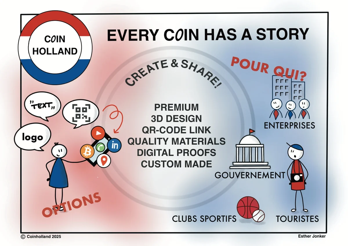 Coinholland a pour objectif de faire découvrir ces pièces exceptionnelles : des objets personnels et haut de gamme pouvant servir de souvenir, de marque de reconnaissance ou de cadeau exclusif — dans un cadre professionnel comme privé.