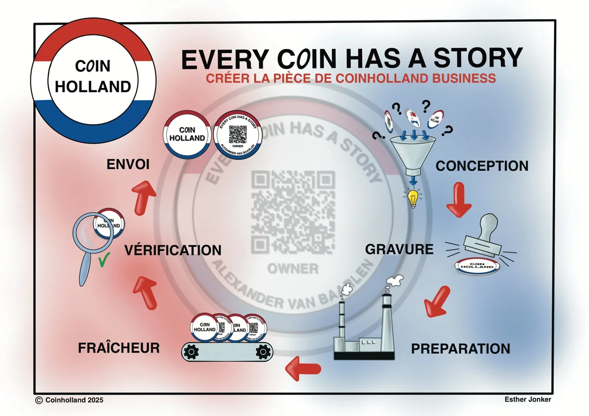 Aux États-Unis, ces pièces symbolisent l’unité et la fierté au sein d’organisations telles que l’armée, la police et les pompiers. De retour aux Pays-Bas, j’ai décidé de faire connaître cette tradition américaine ici aussi — avec une vision commerciale unique. Lors de la création de Coinholland, j’ai rassemblé autour de moi une équipe d’artisans passionnés.